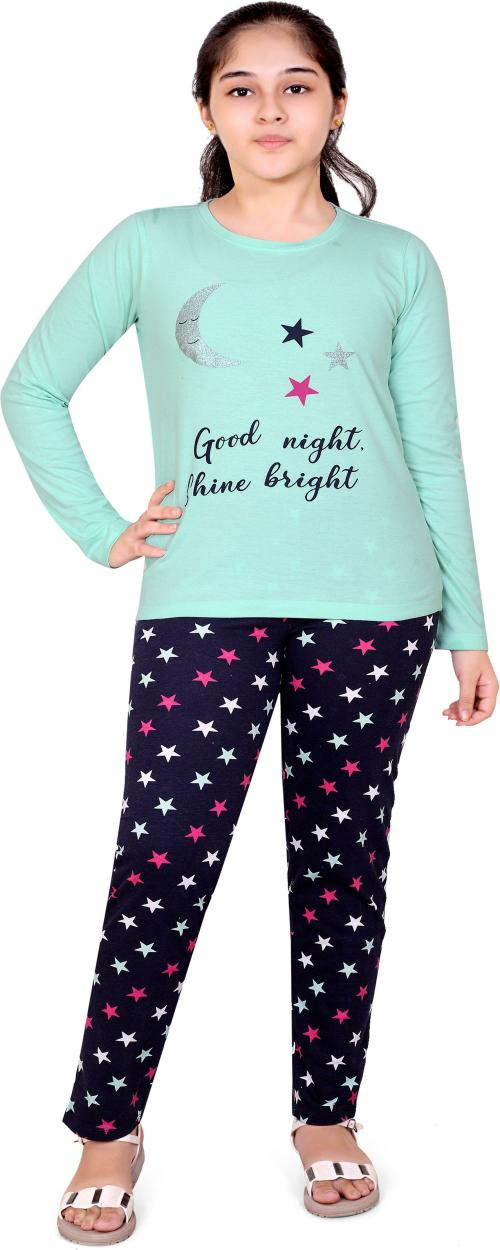 Rhythm Girls Light Green Printed Cotton Blend Top & Pyjama Set (14-15 Y)