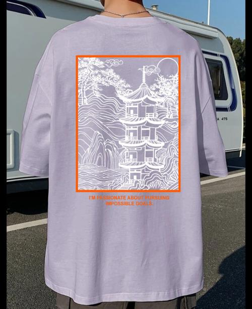 Rigo Men Light Purple Oversized Printed T-shirt