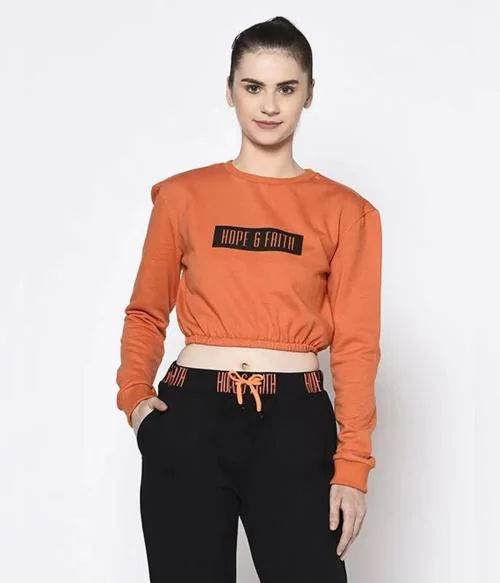Rigo Women Round Neck Printed Crop Fleece Sweatshirt