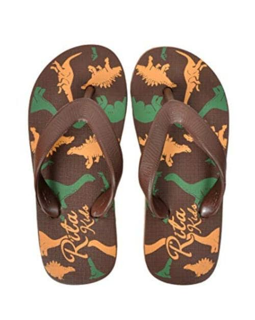 RITA Kids Brown Dinosaur Printed Slippers - (UK 2)