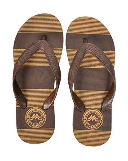 RITA Men Brown Striped Slippers - (UK 10)