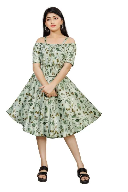 RK MANIYAR Keeping it fresh : A Fit & Flare Berry Printed dress for girls ( Green )