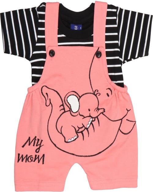 ROBLWINGS Dungaree For Baby Boys & Baby Girls Striped Cotton Blend (Pink, Pack of 1)