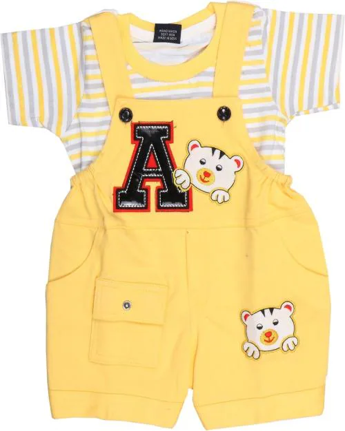 ROBLWINGS Dungaree For Baby Boys Striped, Applique Cotton Blend (Yellow, Pack of 1)