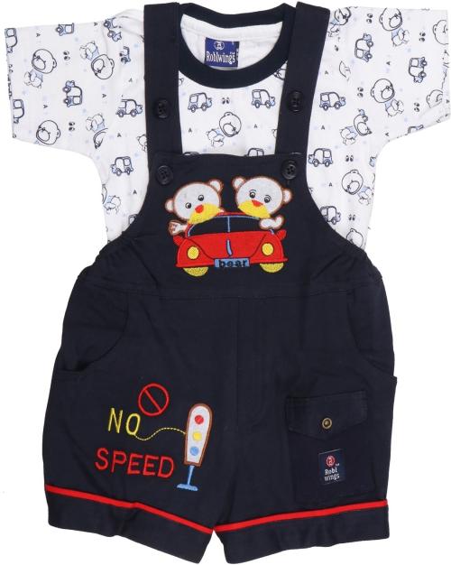 ROBLWINGS Dungaree For Boys & Girls Graphic Print Cotton Blend (Blue, Pack of 1)