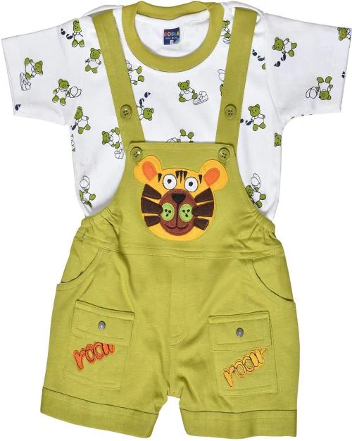 ROBLWINGS Dungaree For Boys & Girls Solid Cotton Blend (Green, Pack of 1)