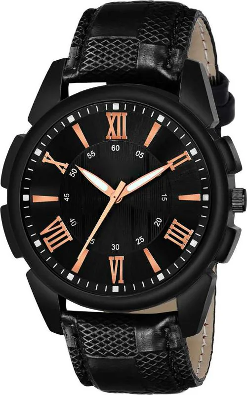 Rozti Analog Black Dial Black Strap Watch for Men