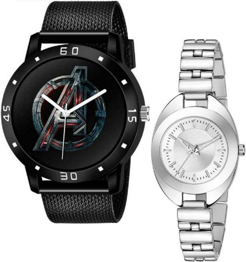 Rozti Analog Silver Dial Silver Strap Watch for Boys and Girls (Pack of 2)