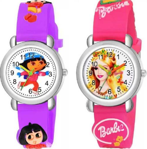 Rozti Analog White Dial Beige Strap Watch for Boys and Girls (Pack of 2)