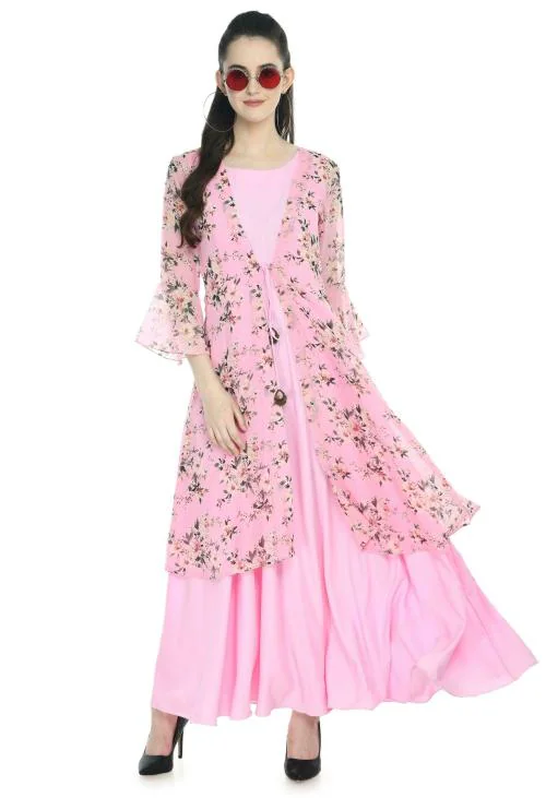 Rudraaksha Women Pink Crepe All over print Single A-line Dress