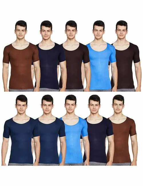 Rupa Rupa Jon Men's Assorted Solid 100% Cotton Pack of 10 Half-Sleeve Vest