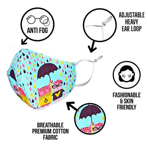 RVH 3 Layer Cotton Digital Printed kids Mask Combo Pack Reusable Washable Breathable Soft with Adjustable Ear loops For Boys Girls Mask