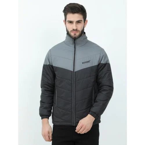 RYKER Men's Full Sleeve Colorblock Casual Jacket (Black-Grey)