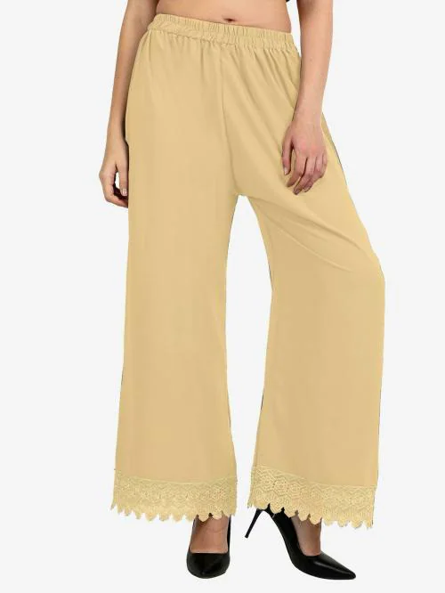 Saadhvi Women Beige Embellished Crepe Palazzos