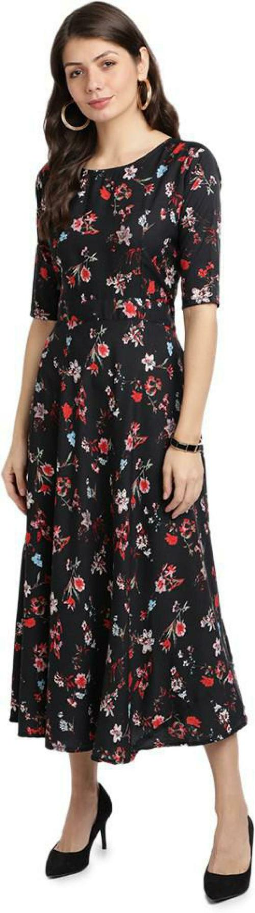 SAADHVI Women Black Printed Crepe Dress