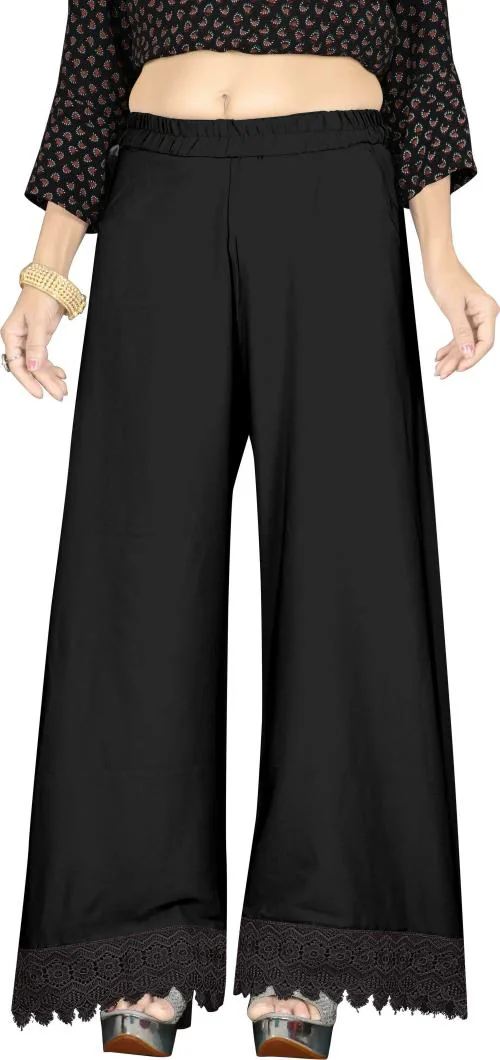 Saadhvi Women Black Solid Crepe Palazzos