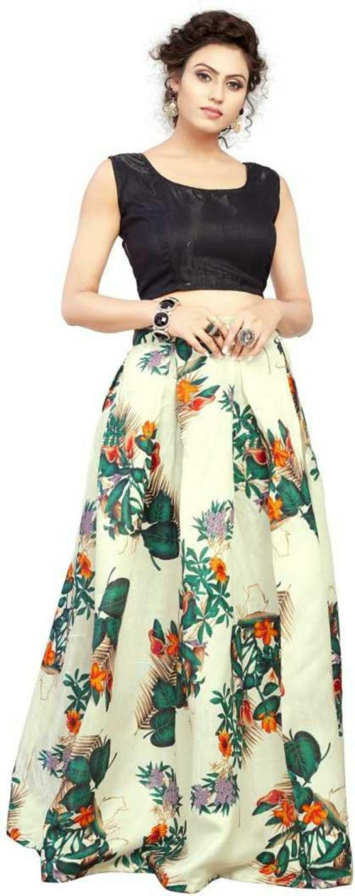 SAADHVI Women Multicolor Floral Semi-Stitched Single Lehenga Choli