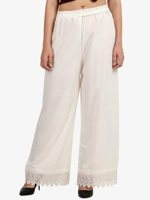 Saadhvi Women White Solid Crepe Trousers