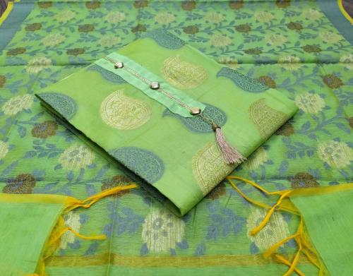 Sainoor Women Free Size Green Self Design Cotton Blend Semi-Stitched Dress Material