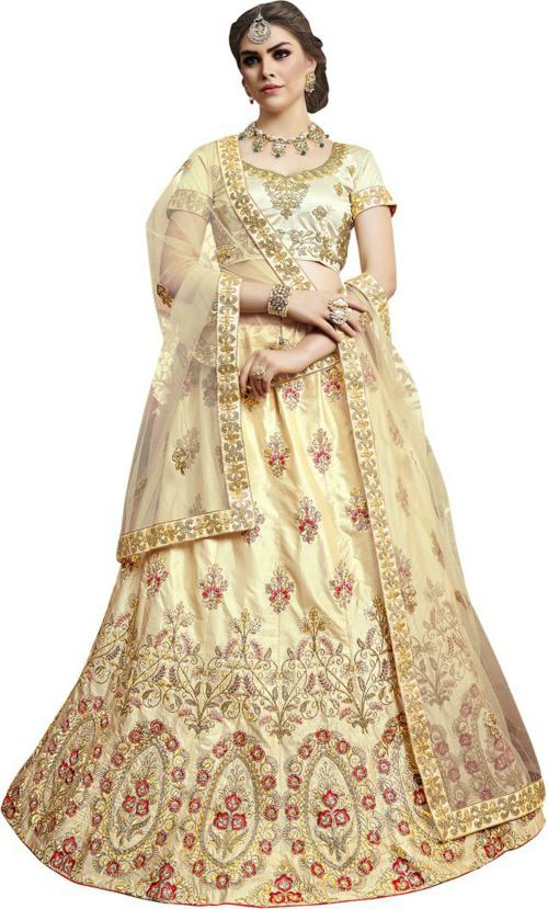 Sainoor Women Free Size Red,Gold Embroidered Pure Silk Lehenga Choli Set