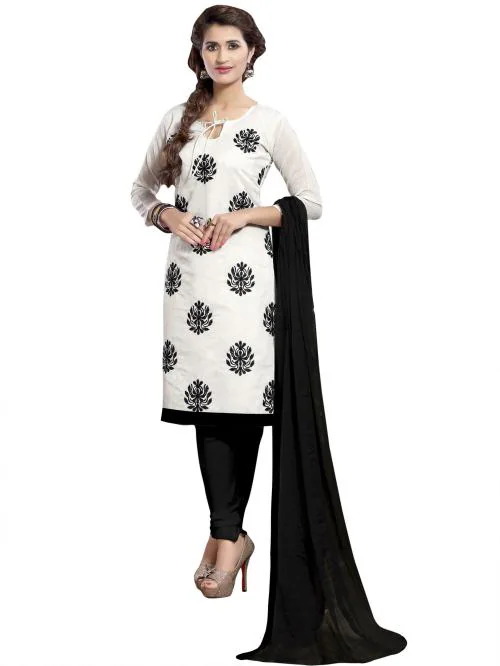 Sainoor Women Free Size White Embroidered Cotton Blend Unstitched Dress Material