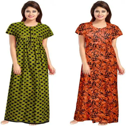 Sajao Creation, 100% soft cotton fabric for ultimate comfort, Length: Full Ankle Length, Size: Nighty comes in All size and completely adjustable.