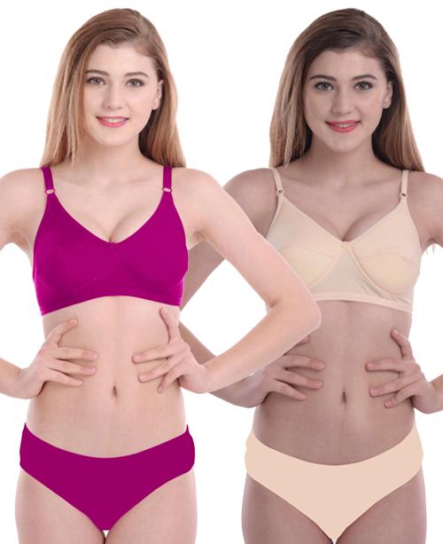 Samvar -Women Cotton Bra Panty Set for Lingerie Set ( Pack of 2 ) ( Color : Pink,Gold )