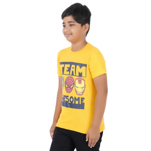 SAN TEE Boys Printed Pure Cotton T Shirt - Yellow (Pack of 1)(14-15years)