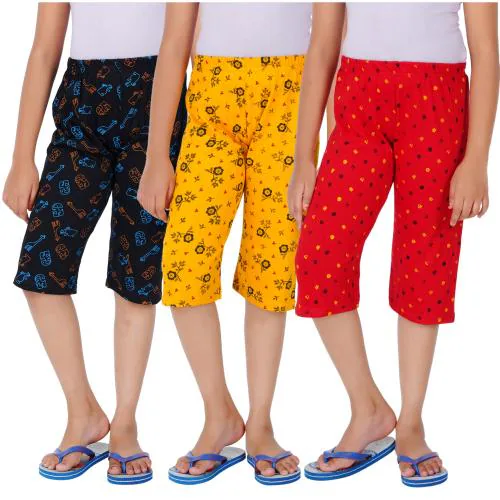 SAN TEE Capri For Girls Casual Printed Pure Cotton (Multicolor Pack of 3)10-11Y