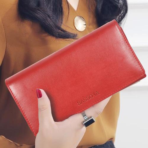 Sassora Genuine Leather Girls RFID Protected Travel Wallet (Red)