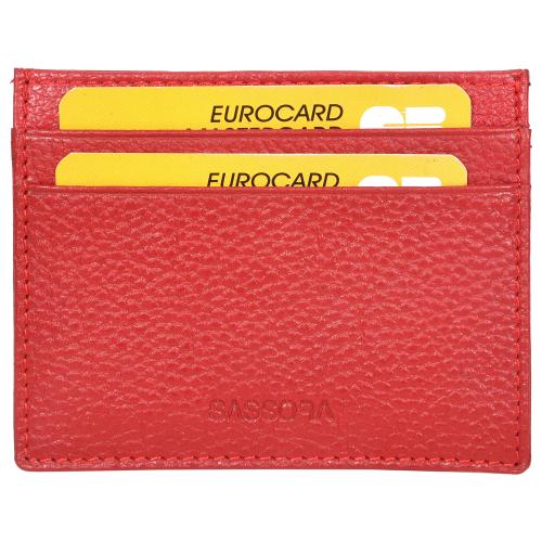 Sassora Genuine Leather Unisex Small RFID Card Holder(Red)