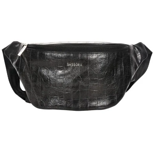 Sassora Genuine Premium Leather Unisex Black Beltbag with Adjustable Strap Nickel Metal Fittings