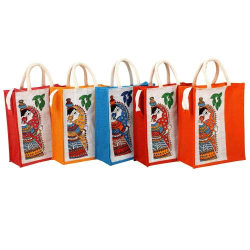 SB BAGS Jute / Shopping Bag / Shopping Bag // Shopping Bag Grocery Bag With Zip Closure (Pack Of 5)