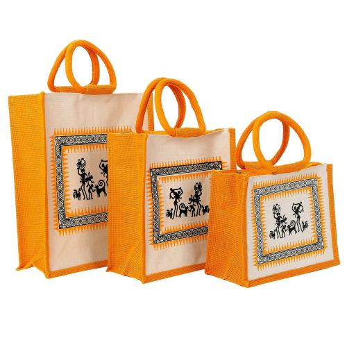 SB BAGS Yellow Jute / Shopping Bag / Shopping Bag // Shopping Bag Grocery Bag With Zip Closure (Pack Of 3)