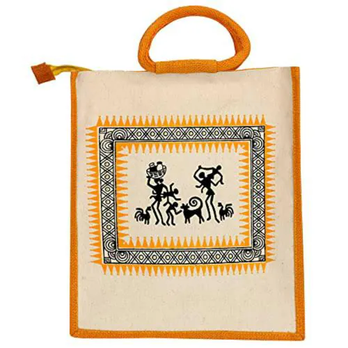 - Stylish and trendy prints to make you stand out, a multipurpose sangra jute bag which can be used as a lunch bag, tote bag, shopping bag, handbag, ethnic bags, messenger bags, everyday handbags, travel bag, party bag and as a utility bag for work for gym for college for school