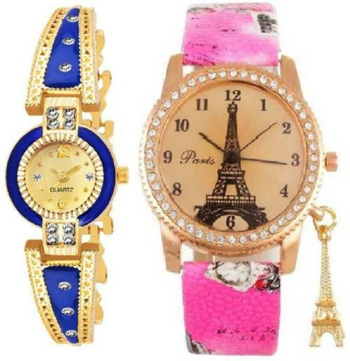Selloria Analog Gold Dial Multicolour Strap Watches for Women, Girls (pack of 2)