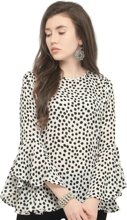 Serein Women White Polka Crepe Single Tops
