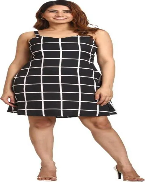 SHIRAK Women Black Checkered Crepe A-line Dress - XXL
