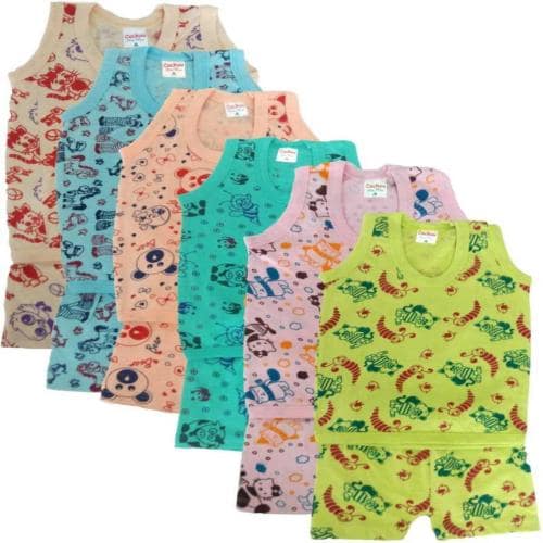 Shishu Baby Boys And Girls Multicolor Printed Hosiery Set Of 6 Vest And Shorts