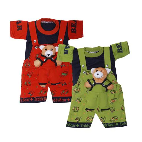 Shishu KIDS TEDDY DITACHBEL DUNGAREE (PACK OF 2)