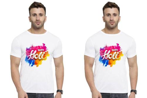 Shopyholik Printed White Men Holi Tshirt Combo Pack of 2 Units