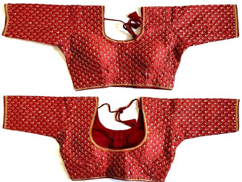 This blouse is made from Phantom silk. This blouse can be adjusted as per the suitable size, Blouse making Size 38 Inch ,You can Self alter 36 to 40 inch. Blouse has Front open pattern with hook.Heavy Sequance Thread Work for all Over Blouse. you can match this blouse piece with party and festival saree, Wedding saree, Bollywood saree.