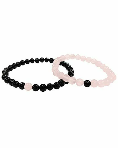 - Material used black onyx and rose quartz stone and elastic threadsbead diameter 6 mmbracelet diameter 5.5Cmblack onyx beads 34,rose quartz beads 28weight 20 gmsize stretchablepair of rose quartz black onyx smooth finish stone stretch braceletsblack onyx is associated with our base chakra.Chakrasheart chakra,zodiac taurus, libra,planet venusgift gift idea for your boyfriend, girlfriend, wiife, husband, lover as love bracelet or friends, family as friendship bracelet