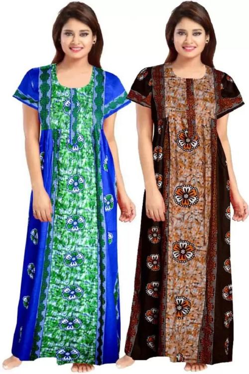 SHUNIT CREATIONS Women's Cotton Printed Nighties Pack of 2 (Nighties001-Multicolor-Free)