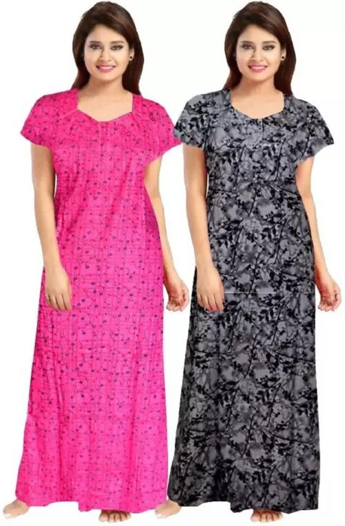 SHUNIT CREATIONS Women's Cotton Printed Nighties Pack of 2 (Nighties001-Multicolor8-XL)
