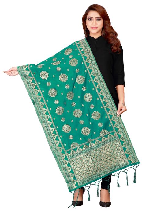 Silk Blend Banarasi Silk Jecquard Work Green Color Duappta 2.25 Mtr