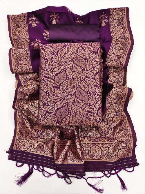 Silk Blend Womens Wine Jacquard Unstiched Salwar Suit Material With Dupatta