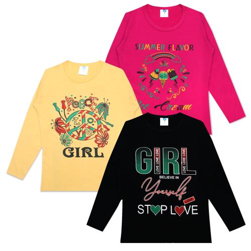 Silver Fang Girls Full Sleeve Round Neck Cotton Blend (Pack of 3) T-shirt