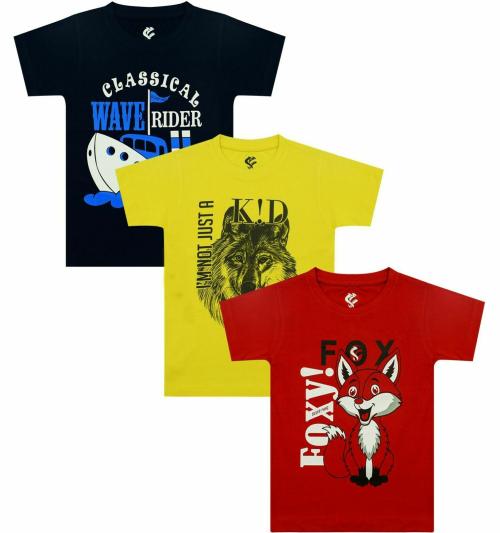 Silverfang Boys Multicolor Printed Cotton Blend (Pack of 3) T-shirt