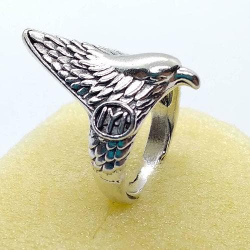 SILVOSWAN Silver Plated Metal Ertugrul IYI Eagle Rings for Unisex, size 16
